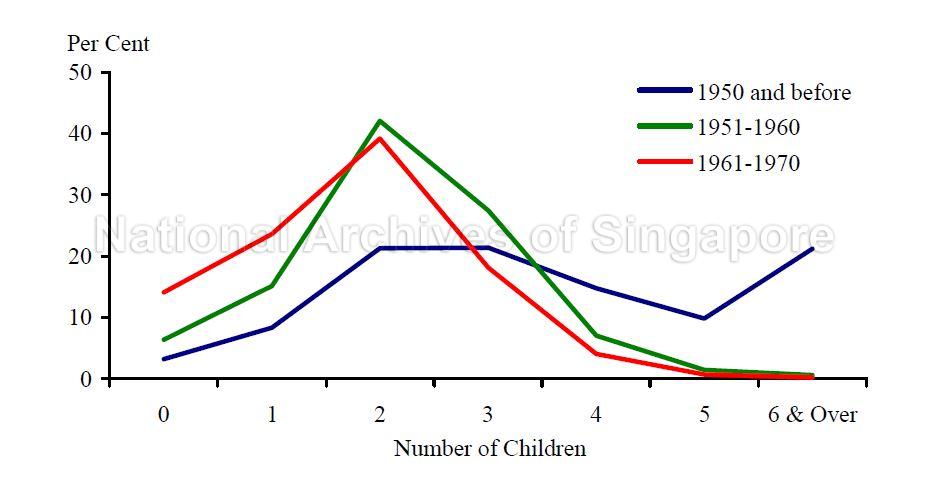 Among females who had completed child-bearing, the university-educated had the highest proportion with no children or only one child. Some 10 per cent of the graduate females aged 4049 years were childless in 2000, almost double the proportion for those with below secondary qualification (5.4 per cent) (Table 9). Another 19 per cent of the graduates in the same age group had only one child. Taken together, 28 per cent of the university-educated females were childless or had only one child. This was closely followed by those with post-secondary qualification (26 per cent) and secondary qualification (24 per cent).