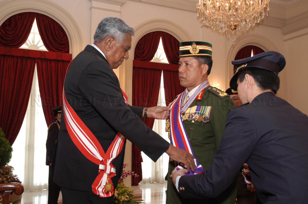 The Commander of the Royal Brunei Armed Forces (RBAF), Major-General (MG) Pehin Dato Paduka Seri Haji Awang Halbi Bin Haji Md Yussof, was conferred Singapore’s highest military award, the Darjah Utama Bakti Cemerlang (Tentera) [Distinguished Service Order (Military)], by President S R Nathan at the Istana this morning.