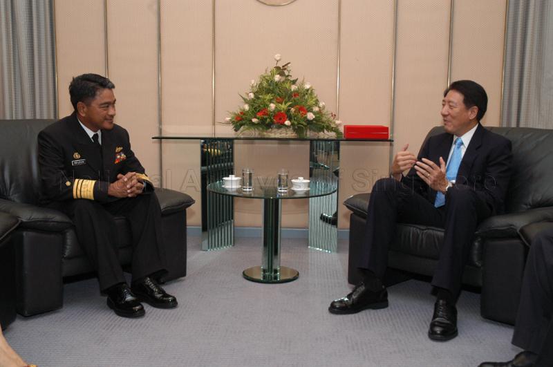 Flag-Officer-in-Command of the Philippine Navy, Vice-Admiral Ernesto H De Leon, made an introductory call on Minister for Defence, Mr Teo Chee Hean, this morning. He also called on Chief of Navy, Rear-Admiral Ronnie Tay. Vice-Admiral de Leon, who attended the ASEAN Navies Interaction programme hosted by the Republic of Singapore Navy earlier this week, will depart Singapore this afternoon.