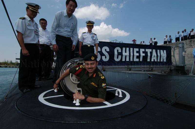 His Royal Highness Prince Haji Al-Muhtadee Billah, the Crown Prince of Brunei Darussalam, visited Changi Naval Base (CNB) today. During the visit, His Royal Highness went on board the submarine RSS Chieftain and the Landing Ship Tank RSS Persistence, and was given a tour of CNB which included the High Performance Magazine.