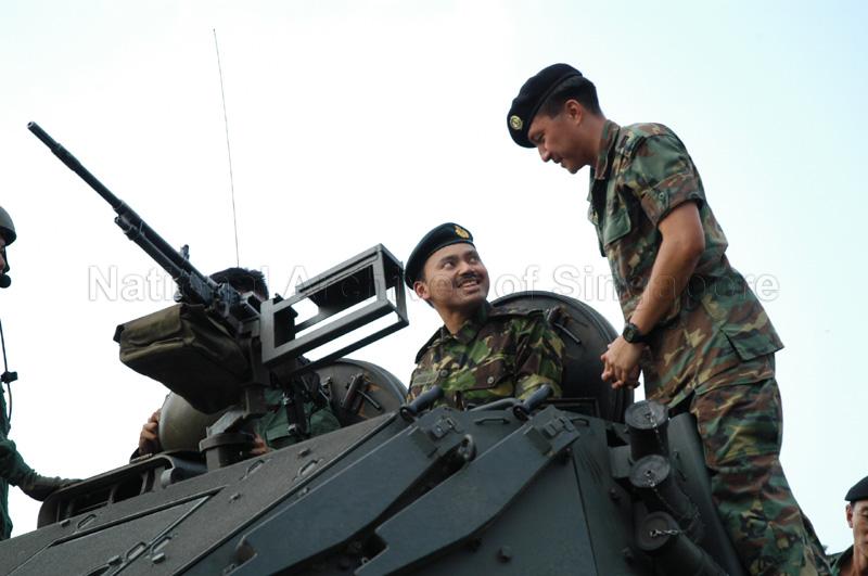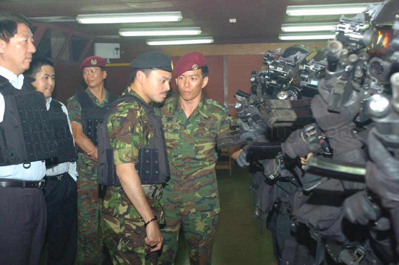 His Royal Highness Prince Haji Al-Muhtadee Billah, the Crown Prince of Brunei Darussalam, visited HQ Commando this afternoon, where he observed demonstrations by the Special Operations Force (SOF) and viewed the SAF’s Bionix and Light Strike Vehicle. His Royal Highness was later presented with an Ultimax 100 Section Assault Weapon as a memento of his visit by Defence Minister Teo Chee Hean. His Royal Highness also met Royal Brunei Armed Forces personnel attending SAF courses in