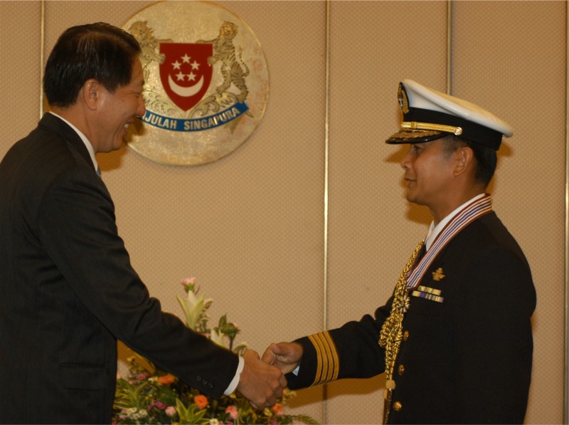 1. The Commander of the Royal Brunei Navy, Yang Mulia Colonel Joharie Bin Haji Matussin, was conferred Singapore’s prestigious military award, the Pingat Jasa Gemilang (Tentera), or the Meritorious Service Medal (Military), by Minister for Defence Mr Teo Chee Hean at an investiture ceremony at the Ministry of Defence this morning.