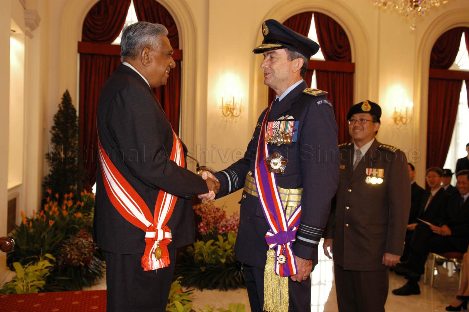 The former Chief of Defence Force of the New Zealand Defence Force, Air Marshal (Retired) Bruce Reid Ferguson OBE, AFC, was conferred Singapore’s highest military award, the Darjah Utama Bakti Cemerlang (Tentera) [Distinguished Service Order (Military)], by President S. R. Nathan at the Istana this morning.