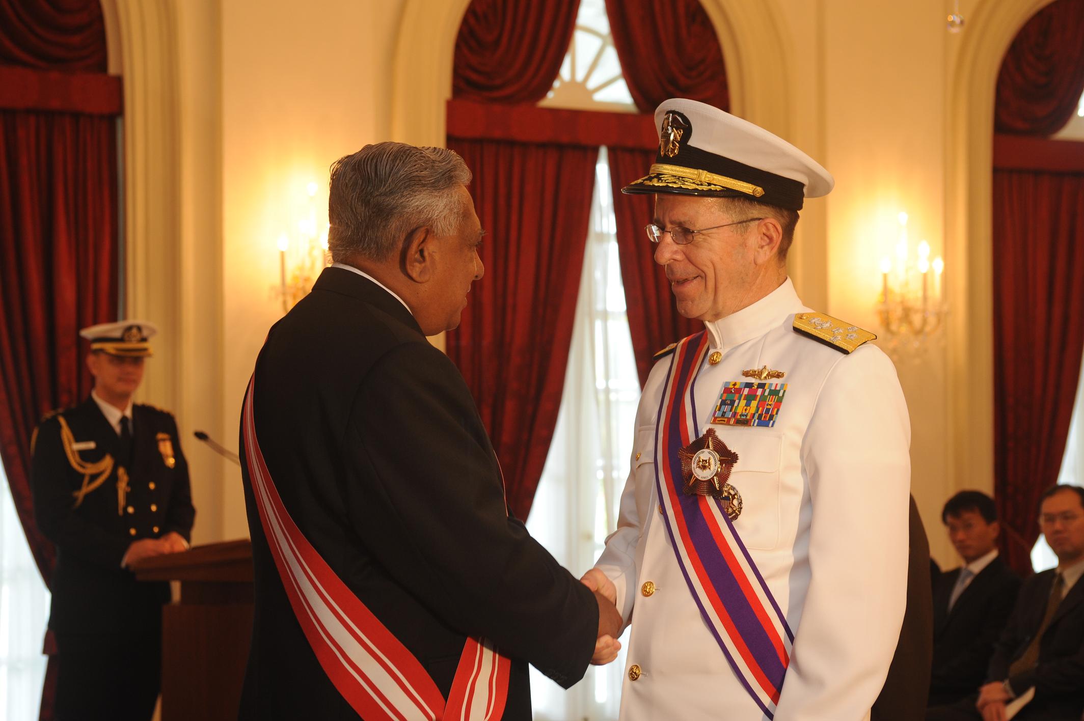The Chairman of the Joint Chiefs of Staff, United States of America, Admiral Michael G. Mullen, was conferred Singapore’s highest military award, the Darjah Utama Bakti Cemerlang (Tentera) [Distinguished Service Order (Military)], by President S. R. Nathan at the Istana this afternoon.The Distinguished Service Order (Military) was awarded to Admiral Mullen in recognition of his significant contributions toward enhancing the excellent ties between the United States Armed Forces and the Singapore Armed Forces (SAF). Under Admiral Mullen’s leadership, both armed forces have embarked on new areas of co-operation, such as counter-proliferation of weapons of mass destruction, counter-terrorism and maritime security. The United States Armed Forces and the SAF also conduct an extensive range of military interactions, which have strengthened mutual understanding and co-operation.