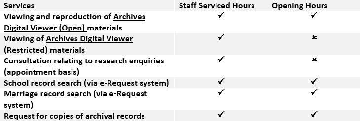 WHAT ARE THE DIFFERENCES IN THE SERVICES PROVIDED AT THE ARCHIVES READING ROOM (ARR) AND READING ROOM AT LEE KONG CHIAN REFERENCE LIBRARY (LKCRL)?