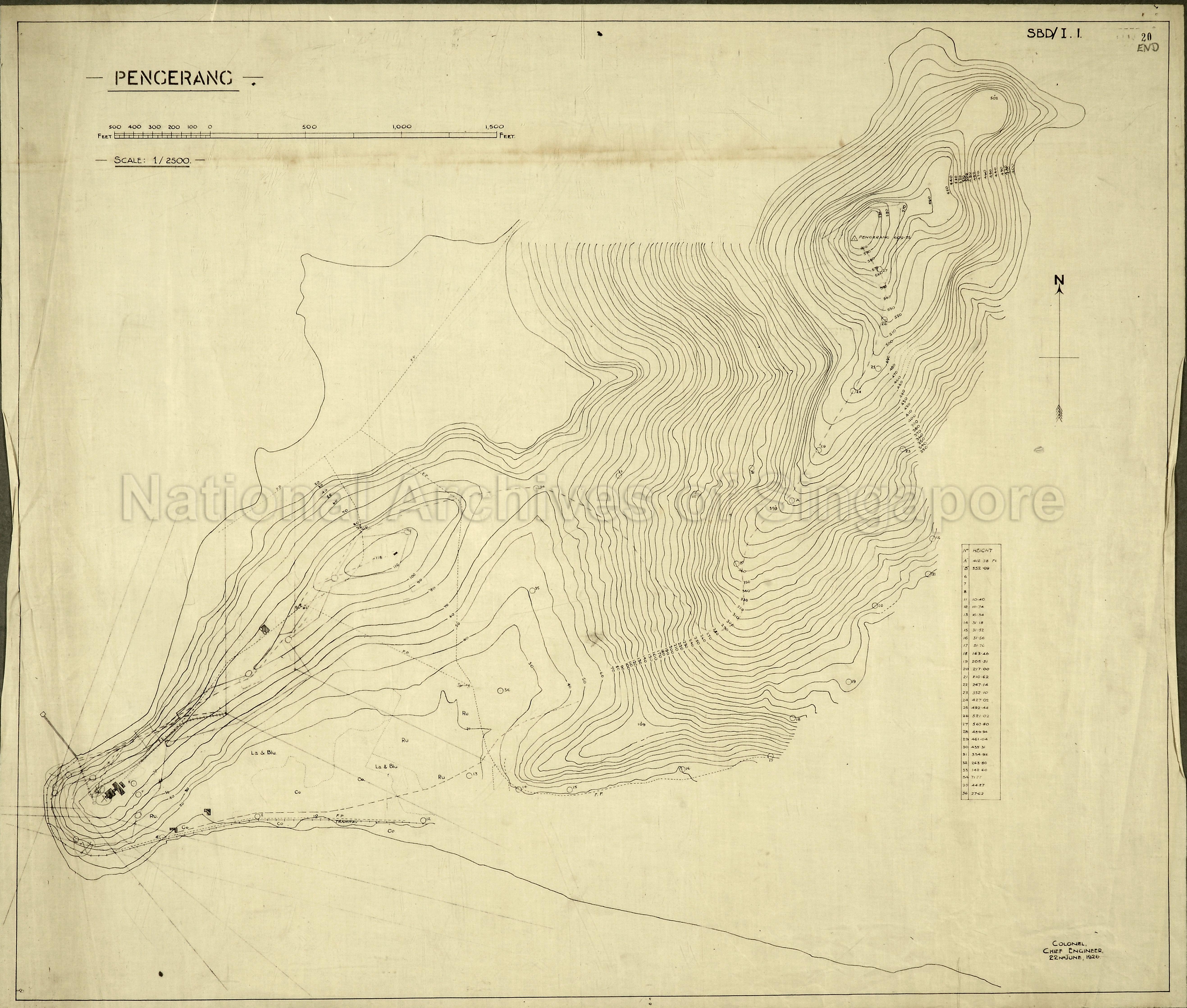 A contoured map of Pengerang. From War Office and predecessors: Maps and Plans.