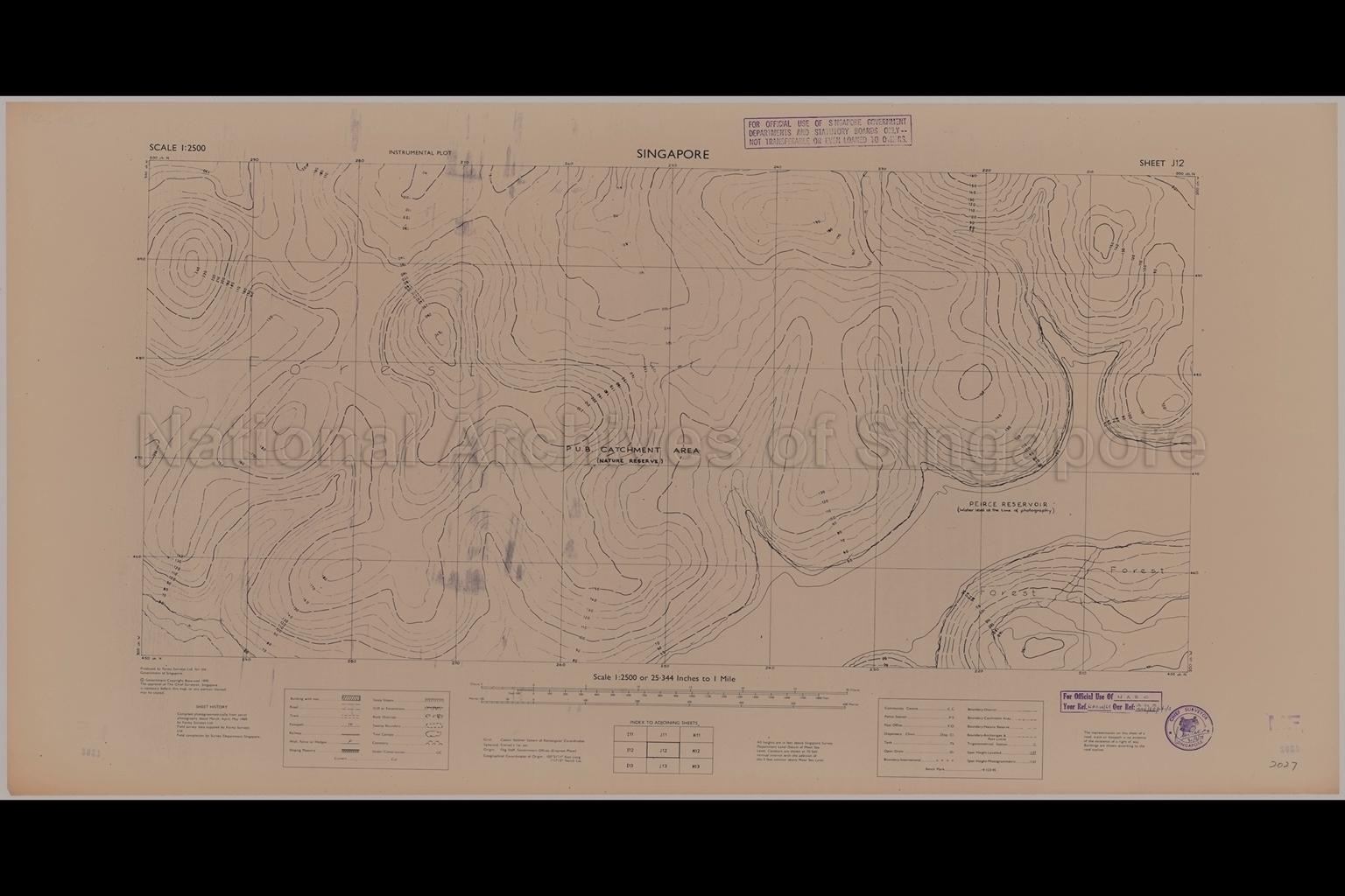 Map shows contours, forest, nature reserve, Public Utilities Board Catchment Area, Peirce Reservoir, and others