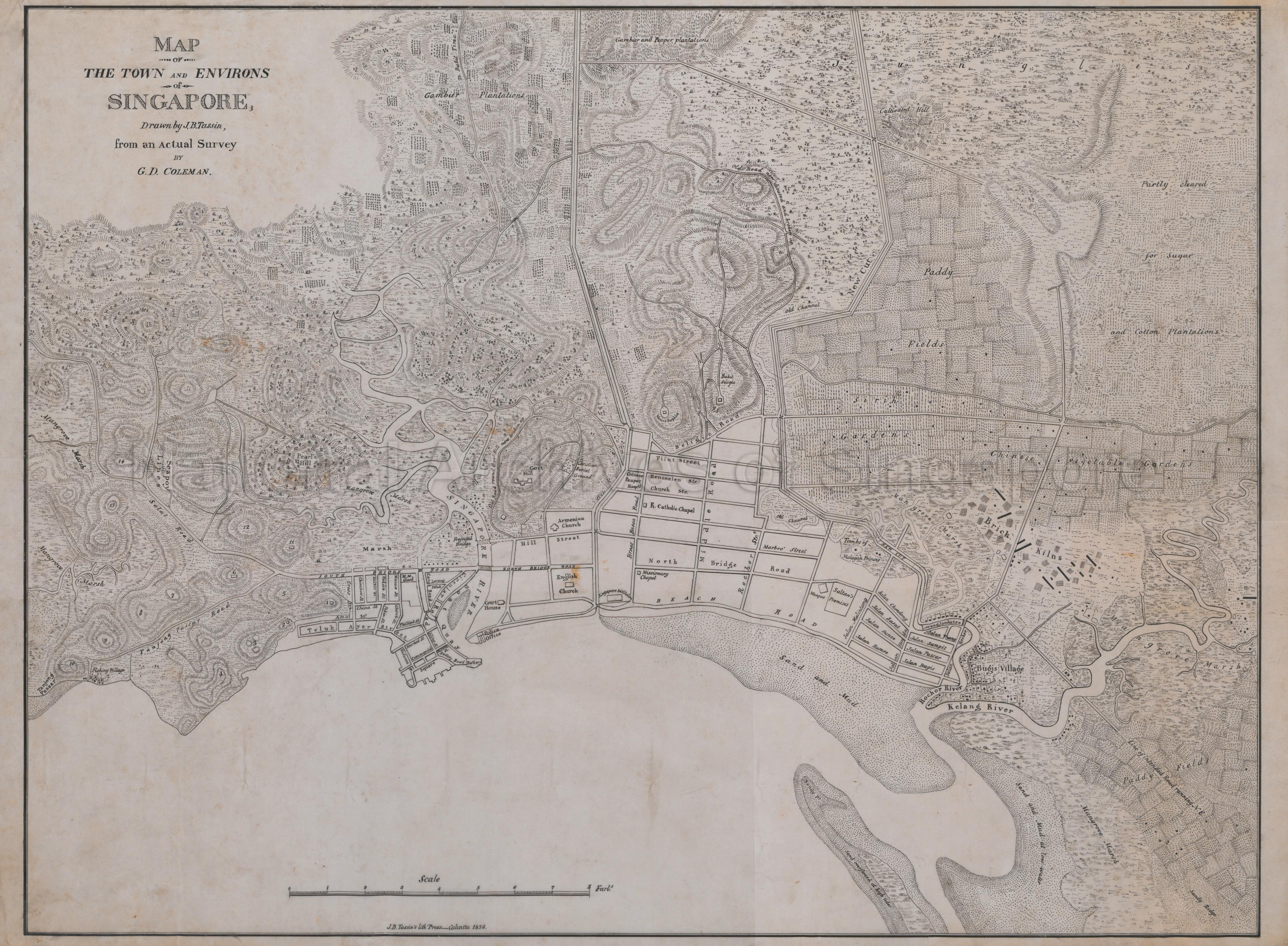 Coleman conducted the first topographical survey of Singapore in 1829, which was drawn and printed in 1836.