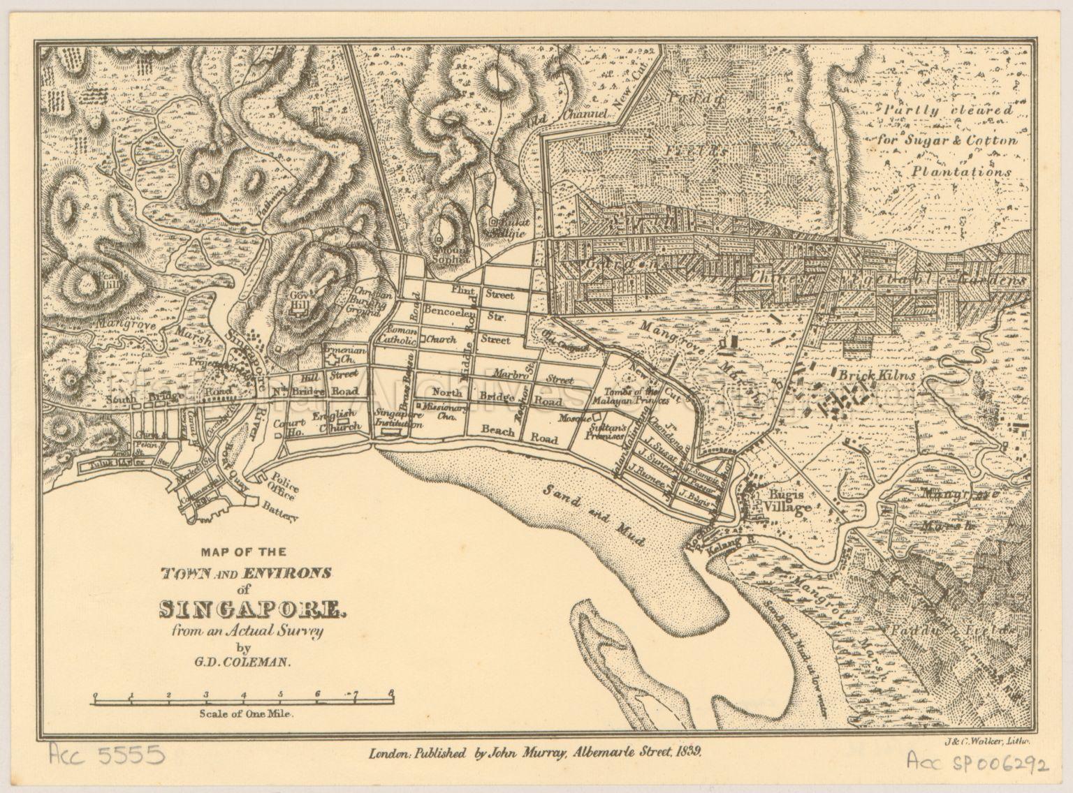 Map of the Town and Environs of Singapore from an Actual Survey by G.D. Coleman