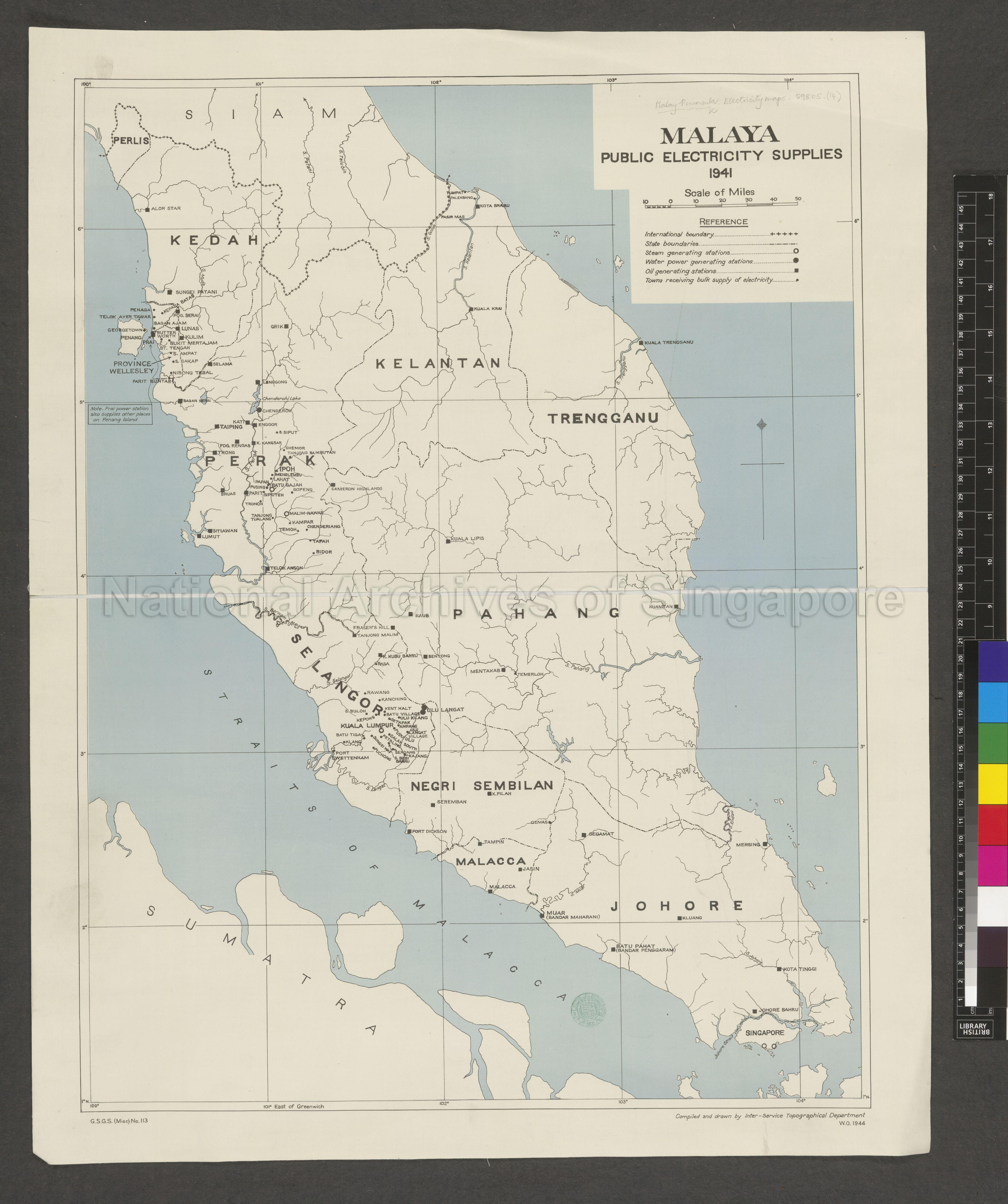 Map showing steam generating stations, water power generating stations an oil generating stations in Malaya