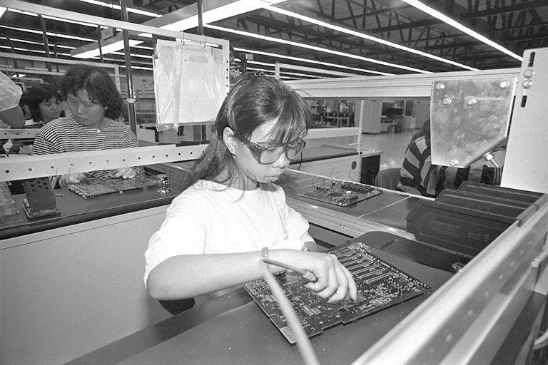 EMPLOYEES AT WORK IN NEW FACTORY OF APPLE COMPUTER SINGAPORE PTE LTD AT ANG MO KIO STREET 64 DURING ITS OFFICIAL OPENING