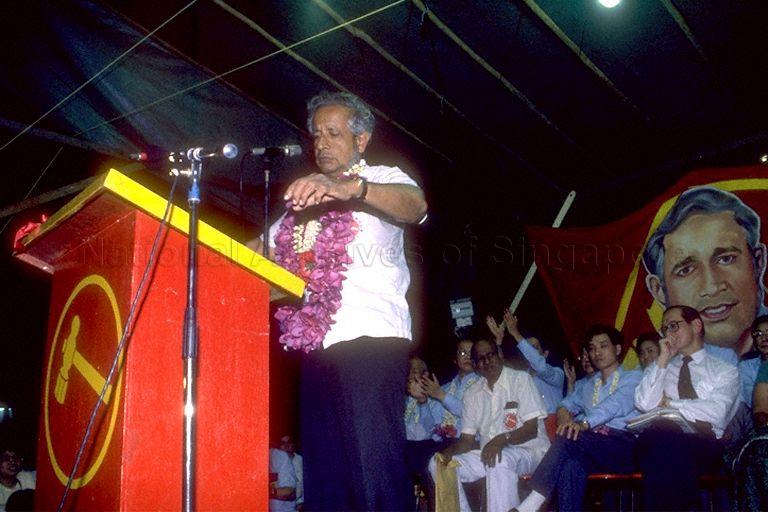 J B JEYARETNAM OF THE WORKERS' PARTY (WP) SPEAKS DURING THE ELECTION RALLY