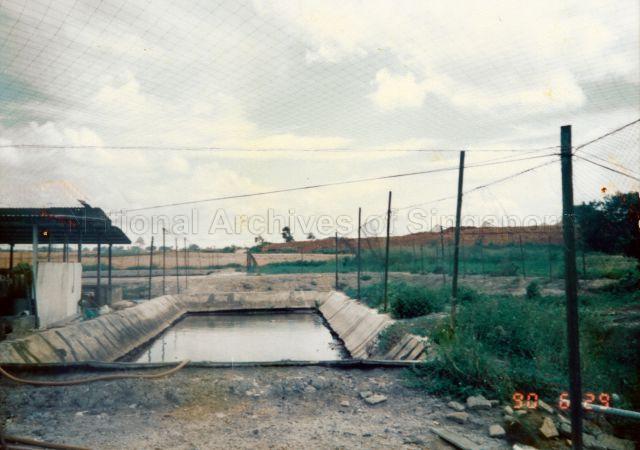 CONCRETE HOLDING POND NEXT TO OPEN ZINC SHED OF FISH FARM IN THE VICINITY OF MAIN FARM HOUSE AT 3736 LIM CHU KANG ROAD