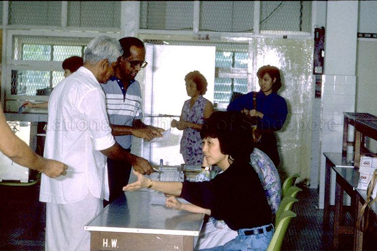 VOTERS REGISTERING AT POLLING STATION AT HONG WEN SCHOOL DURING GENERAL ELECTIONS
