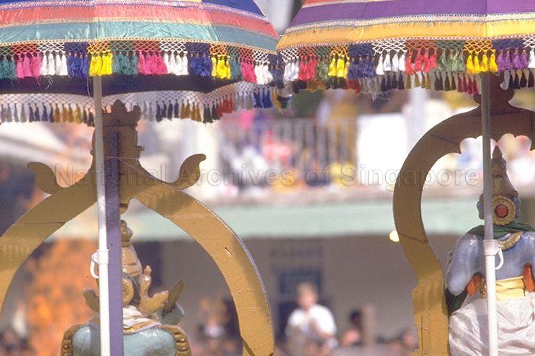 UMBRELLAS AT FIRE WALKING CEREMONY AT SRI MARIAMMAN TEMPLE, SOUTH BRIDGE ROAD