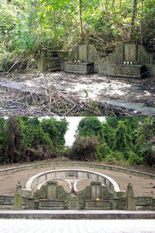 CONTRAST OF ONG SAM LEONG'S TOMB BEFORE AND AFTER THE VEGETATION CLEARANCE ON 17 MAY 2006.