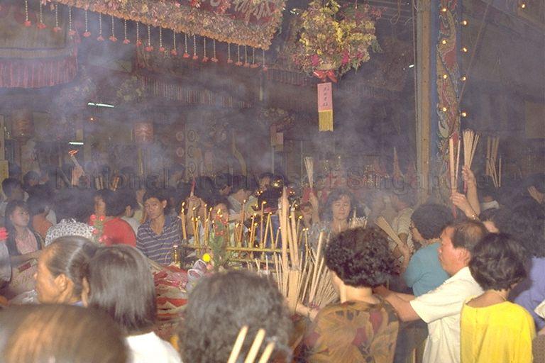 WORSHIPPERS PRAYING TO NINE EMPEROR GODS AT NINE EMPEROR GODS TEMPLE, 5TH MILE, UPPER SERANGOON ROAD