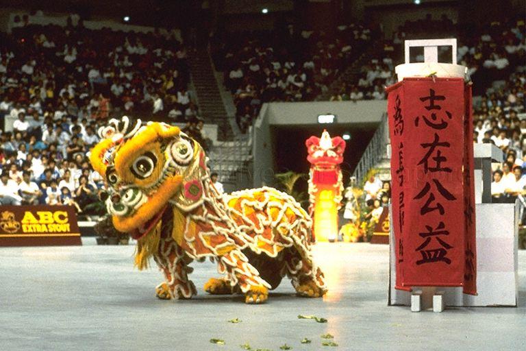 GRAND FINALS OF THE 1990 SINGAPORE LION DANCE TOURAMENT AT S INGAPORE INDOOR STADIUM