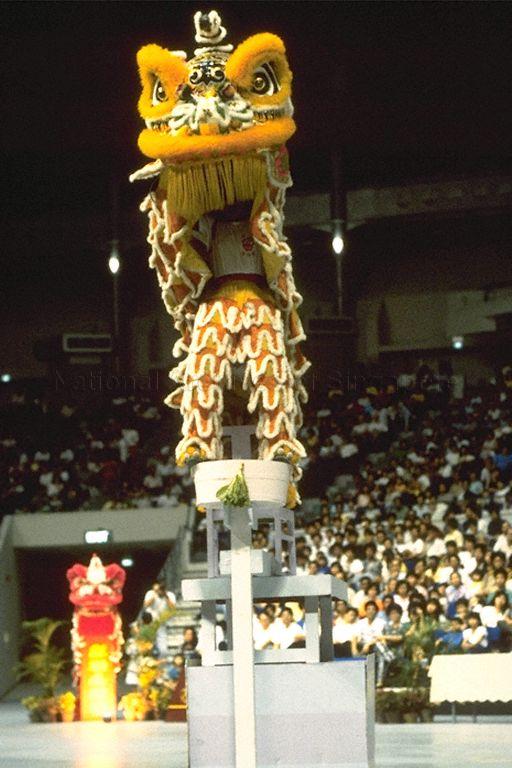 GRAND FINALS OF THE 1990 SINGAPORE LION DANCE TOURAMENT AT S INGAPORE INDOOR STADIUM