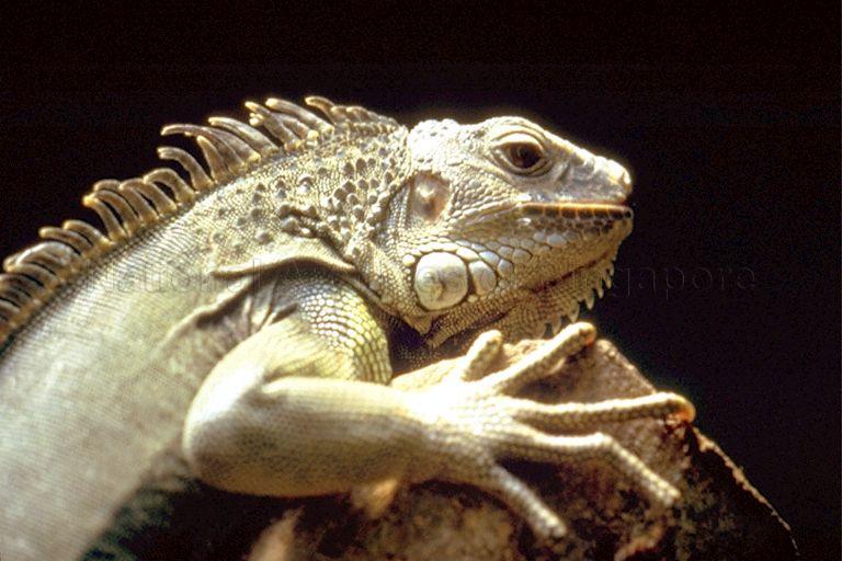 KOMODO DRAGON PERCHED ON TREE AT SINGAPORE ZOOLOGICAL GARDENS, MANDAI