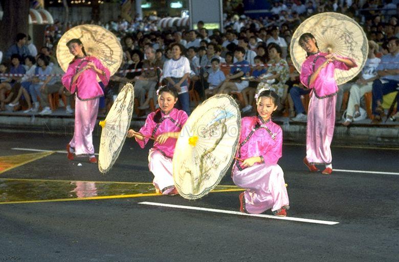 CHINESE UMBRELLA DANCE AT CHINGAY PROCESSION ALONG ORCHARD ROAD