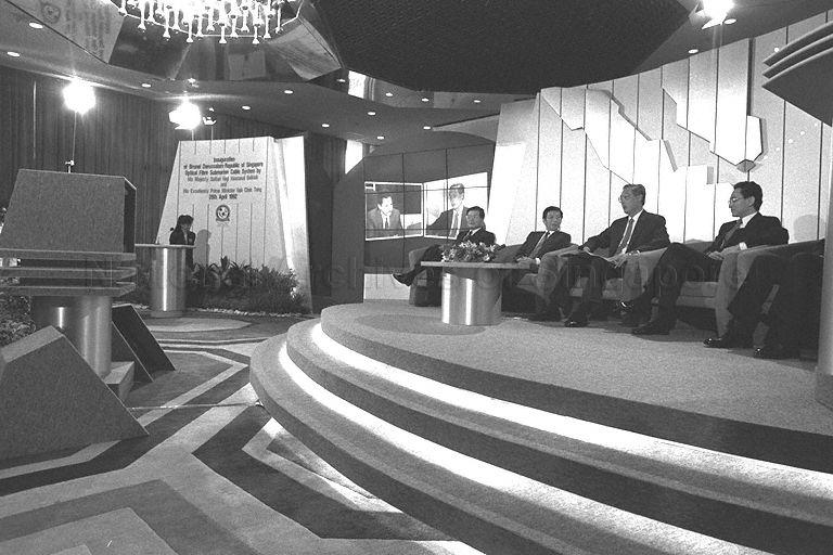 PRIME MINISTER GOH CHOK TONG AS GUEST OF HONOUR AT THE INAUGURATION CEREMONY OF THE BRUNEI - SINGAPORE OPTICAL FIBRE SUBMARINE CABLE SYSTEM AT THE COMCENTRE