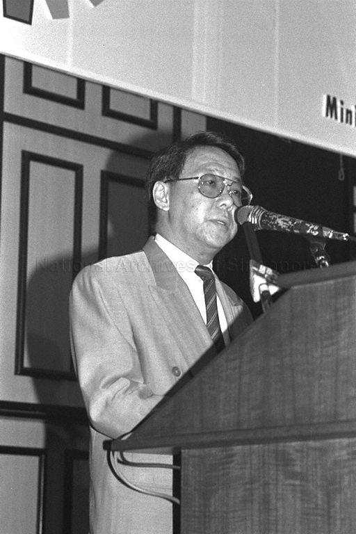 CLOSE-UP OF A SPEAKER AT OPENING CEREMONY OF INSTITUTION OF ENGINEERS SINGAPORE (IES) CONVENTION 1992 AT MANDARIN HOTEL