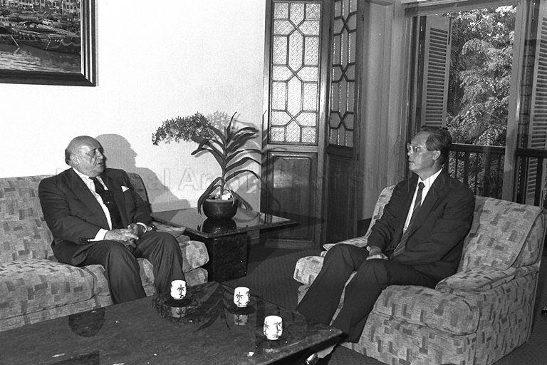TURKISH PRIME MINISTER SULLEYMAN DEMIREL PAYING A COURTESY CALL ON PRIME MINISTER GOH CHOK TONG AT THE ISTANA