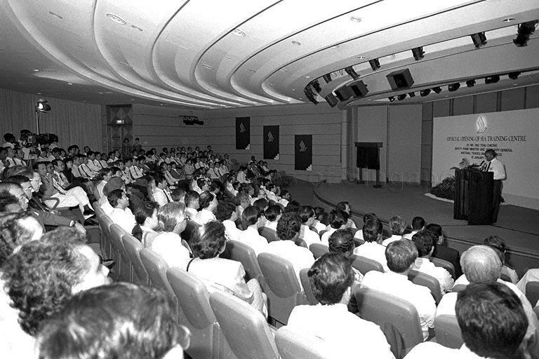 SINGAPORE AIRLINES (SIA) CHAIRMAN J Y PILLAY SPEAKING AT THE OFFICIAL OPENING OF SIA TRAINING CENTRE AT UPPER CHANGI ROAD EAST