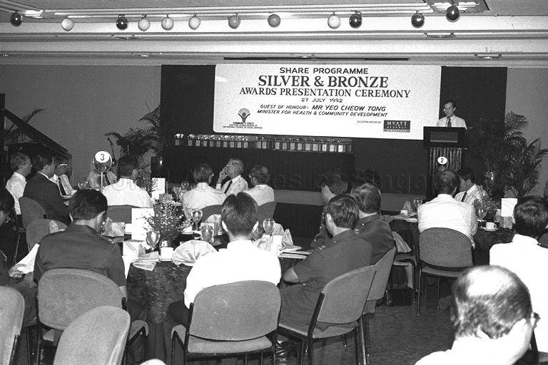 MINISTER FOR HEALTH AND COMMUNITY DEVELOPMENT YEO CHEOW TONG AS GUEST OF HONOUR AT COMMUNITY CHEST OF SINGAPORE SHARE PROGRAMME SILVER AND BRONZE AWARDS PRESENTATION CEREMONY AT HYATT REGENCY HOTEL