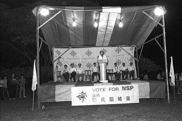 NATIONAL SOLIDARITY PARTY (NSP) CANDIDATES FOR MARINE PARADE GROUP REPRESENTATION CONSTITUENCY (GRC) AND MEMBERS AT NSP RALLY FOR BY-ELECTION IN THE GRC HELD AT VACANT LAND BOUNDED BY PAYA LEBAR ROAD, EUNOS AVENUE 5 AND EUNOS ROAD 8