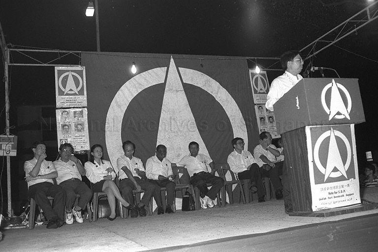 SINGAPORE DEMOCRATIC PARTY (SDP) CANDIDATES FOR MARINE PARADE GROUP REPRESENTATION CONSTITUENCY (GRC) AND MEMBERS AT SDP RALLY FOR BY-ELECTION IN THE GRC HELD AT VACANT LAND BOUNDED BY DUNMAN TERRACE, DUNMAN ROAD AND HAIG ROAD