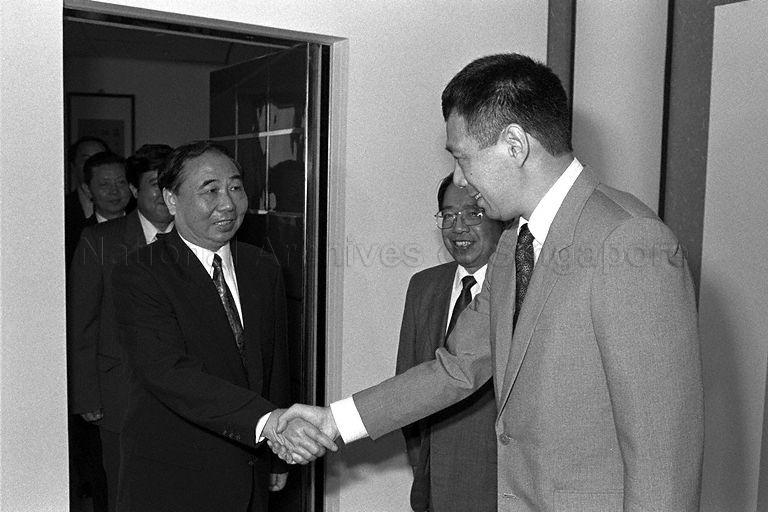 MINISTER HU PING AND DELEGATES FROM PEOPLE'S REPUBLIC OF CHINA PAY COURTESY CALL ON DEPUTY PRIME MINISTER BRIGADIER-GENERAL LEE HSIEN LOONG AT TREASURY BUILDING