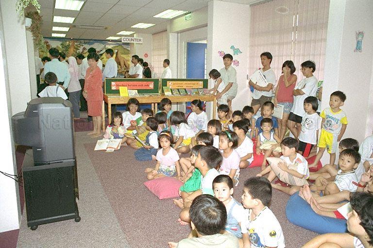 A GROUP OF CHILDREN AT THE BUKIT PANJANG COMMUNITY CHILDREN'S LIBRARY AT BLOCK 270 BANGKIT ROAD DURING THE VISIT OF PRIME MINISTER GOH CHOK TONG