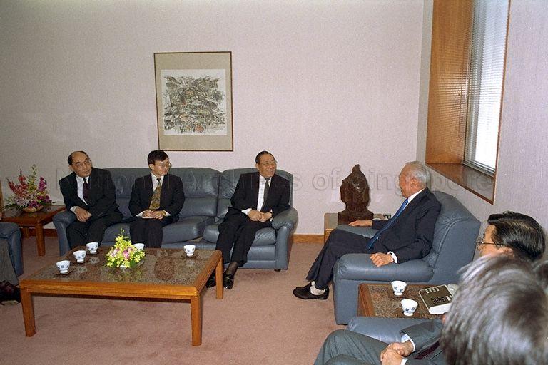 THE PEOPLE'S REPUBLIC OF CHINA VICE-PREMIER, LI LANQING PAYING A COURTESY CALL ON SENIOR MINISTER LEE KUAN YEW AT THE ISTANA.