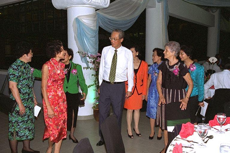 PRIME MINISTER GOH CHOK TONG AND MRS GOH (IN ORANGE, PARTIALLY HIDDEN) WITH FORMER PRINCIPALS OF RAFFLES GIRLS' SCHOOL (RGS) MS EVELYN NORRIS (RIGHT), MS TAN LENG NEO (SECOND FROM LEFT) AND MRS CHEE KENG SOON (LEFT) DURING OFFICIAL OPENING OF RGS AT ANDERSON ROAD