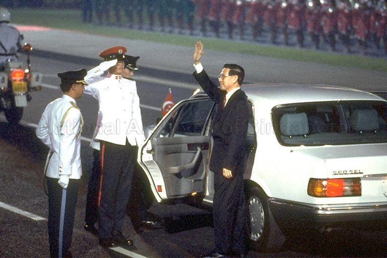 National Day Parade 1995 at the Padang -- President Ong Teng Cheong taking his leave at end of parade