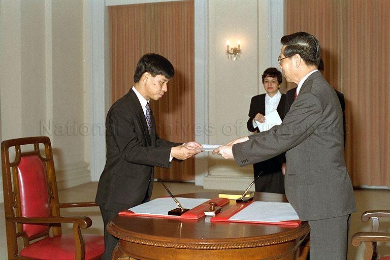 MR CHOO HAN TECK RECEIVES INSTRUMENT OF APPOINTMENT AS JUDICIAL COMMISSIONER OF SUPREME COURT FROM PRESIDENT ONG TENG CHEONG AT SWEARING-IN CEREMONY HELD IN ISTANA STATE ROOM