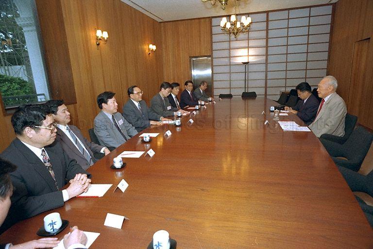 MINISTER OF CHINESE COMMUNIST PARTY CENTRAL PROPAGANDA DEPARTMENT OF THE PEOPLE'S REPUBLIC OF CHINA DING GUAN GEN PAYING A COURTESY CALL ON SENIOR MINISTER LEE KUAN YEW AT THE ISTANA CABINET ROOM