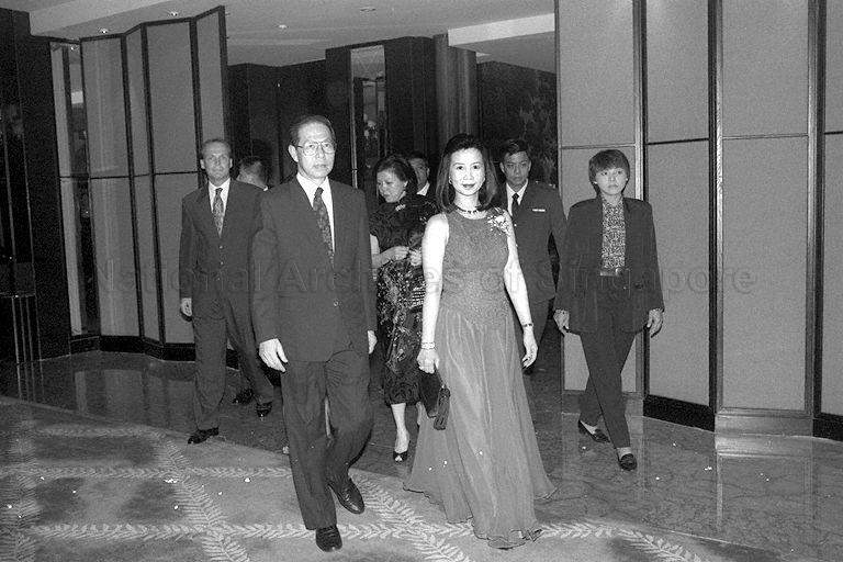 THE HOME NURSING FOUNDATION (HNF) PRESIDENT MRS FANG AI LIAN ACCOMPANYING PRESIDENT ONG TENG CHEONG AND MRS ONG ON THEIR ARRIVAL FOR THE HNF 20TH ANNIVERSARY DINNER AT THE HYATT REGENCY SINGAPORE