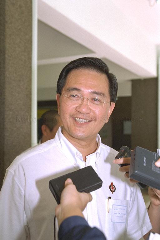 NOMINATION DAY: ANG MO KIO/POTONG PASIR AT ANG MO KIO SECONDARY SCHOOL - PICTURE SHOWS A PEOPLE'S ACTION PARTY (PAP) REPRESENTATIVE SPEAKING TO THE MASS MEDIA