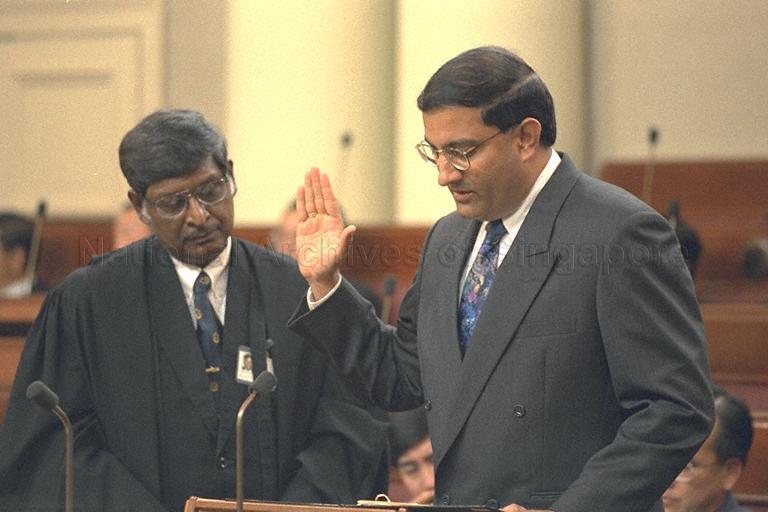 MEMBER OF PARLIAMENT (MP) FOR WEST COAST GROUP REPRESENTATION CONSTITUENCY (GRC) S ISWARAN TAKING OATH AS MP AT SWEARING-IN CEREMONY DURING FIRST SESSION OF NINTH PARLIAMENT AT PARLIAMENT HOUSE