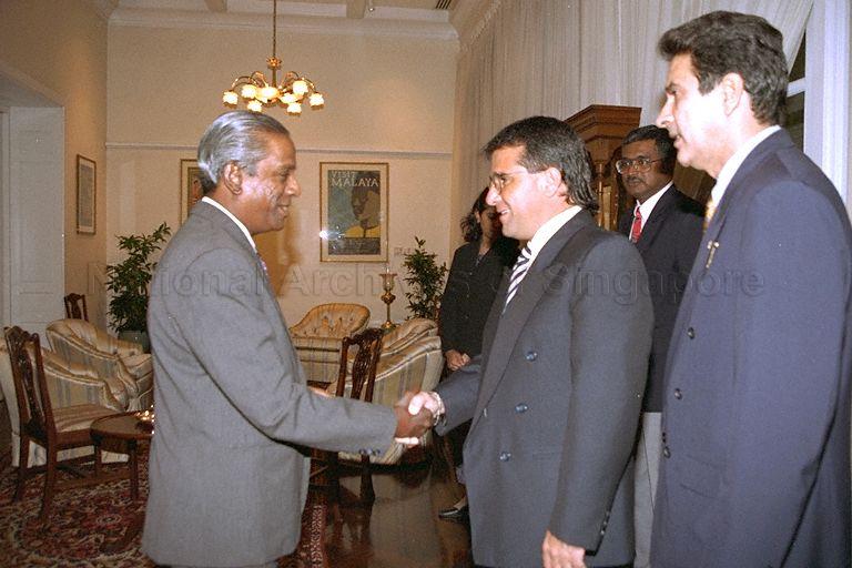 CUBAN FOREIGN MINISTER ROBERTO ROBAINA GONZALEZ CALLS ON MINISTER FOR FOREIGN AFFAIRS AND LAW PROFESSOR S JAYAKUMAR AT FABLES LOUNGE, RAFFLES HOTEL