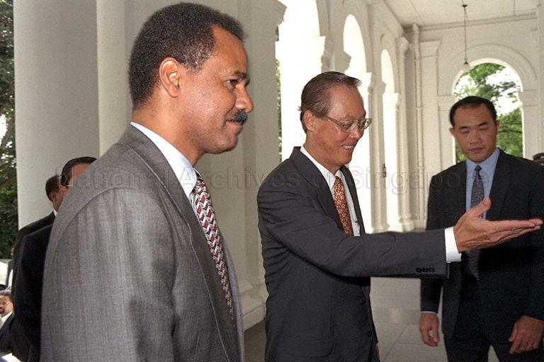 THE PRESIDENT OF THE STATE OF ERITREA ISAIAS AFEWERKI CALLS ON PRIME MINISTER GOH CHOK TONG AT THE ISTANA