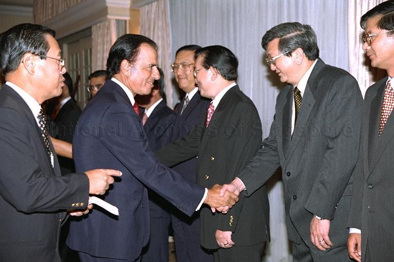 PRESIDENT CARLOS MENEM OF ARGENTINA MEETS THE SINGAPORE OFFICIALS AT THE DINNER HOSTED BY PRIME MINISTER GOH CHOK TONG AT THE BALLROOM, RAFFLES HOTEL