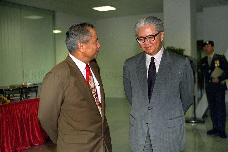 MINISTER FOR DEFENCE, DR TONY TAN KENG YAM PRESENTING THE MERITORIOUS SERVICE MEDAL (MILITARY) TO INDONESIAN ARMY CHIEF OF STAFF GENERAL WIRANTO AT MINISTRY OF DEFENCE (MINDEF), GOMBAK DRIVE
