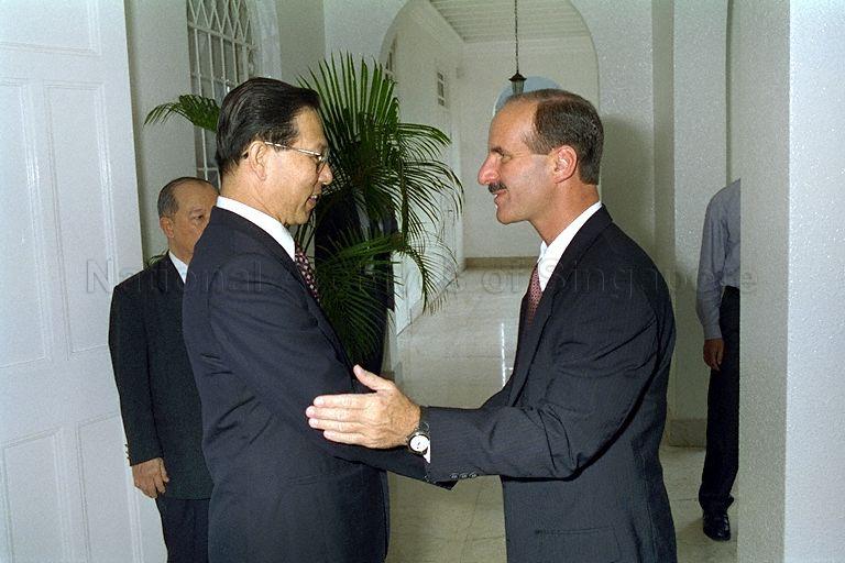 PRESIDENT OF COSTA RICA JOSE MARIA FIGUERES PAYING A COURTESY CALL ON PRESIDENT ONG TENG CHEONG AT THE ISTANA VILLA