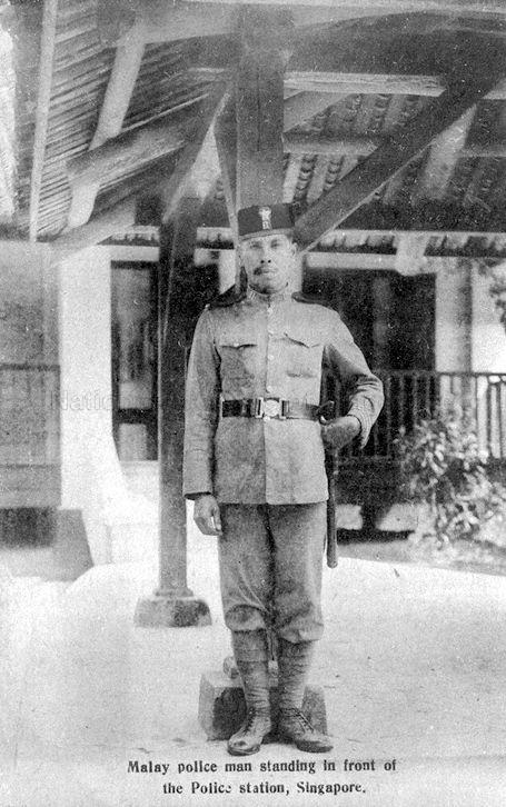MALAY POLICEMAN STANDING IN FRONT OF THE POLICE STATION, SINGAPORE