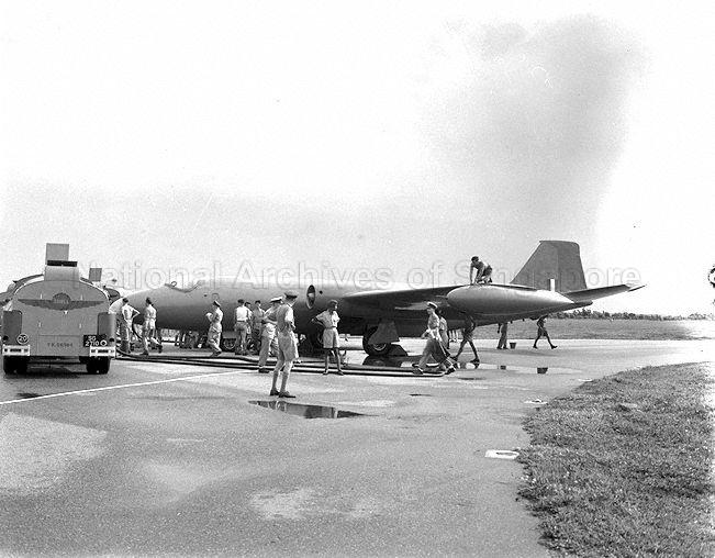 CANBERRA JET UNDER REPAIRS AT CHANGI AIR BASE