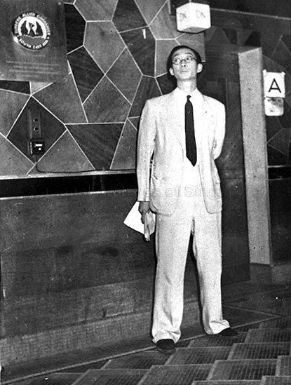 Chairman of Cathay Organisation Loke Wan Tho in a photograph taken during the unveiling of the brass plaque (left) presented by Admiral Lord Louis Mountbatten to Mrs Loke Yew and Mr Loke Wan Tho, owners of Cathay Building. The plaque commemorates the setting up of SACSEA (Supreme Allied Commander South East Asia) headquarters in Cathay building from November 1945.